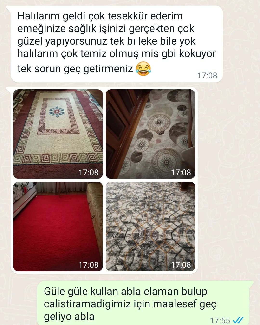 Modern ekipmanlarımız ve etkili temizlik yöntemlerimiz sayesinde, halılarınızı kısa sürede temizleyerek size zaman kazandırır.